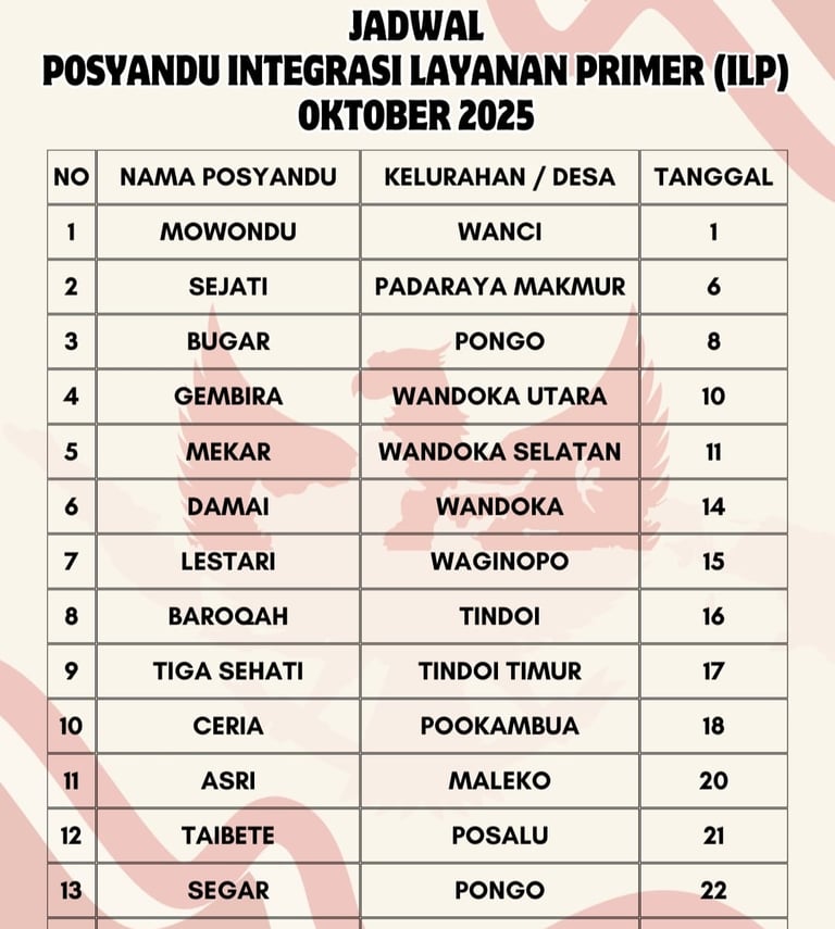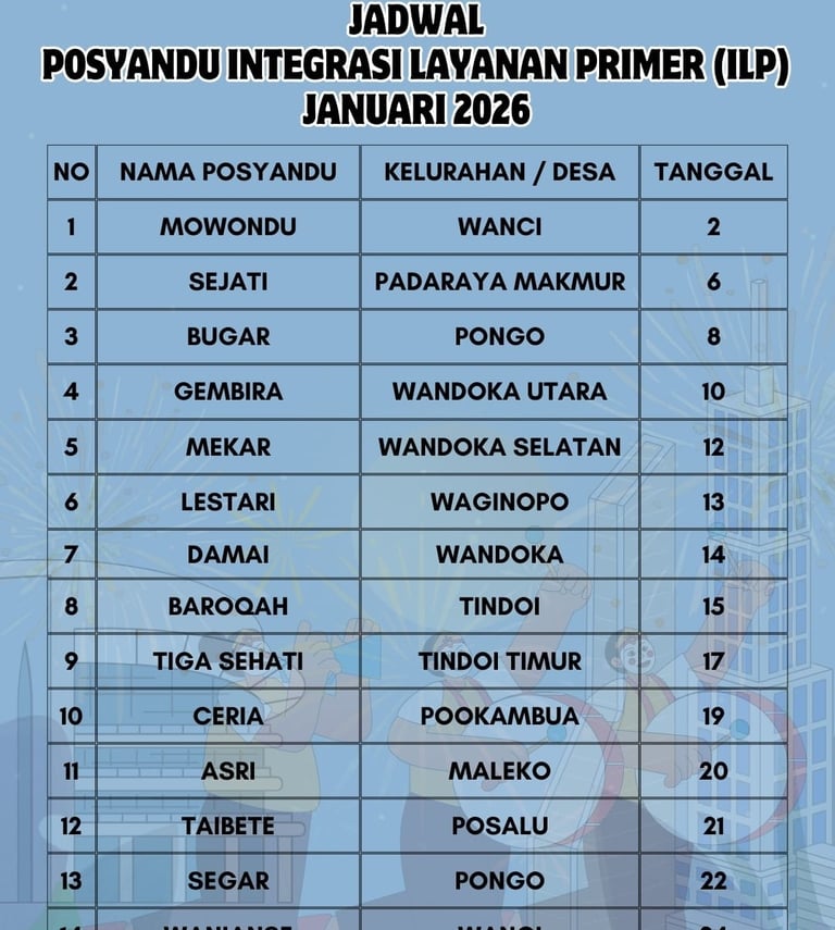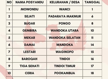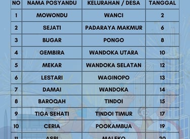 Jadwal pelayanan Posyandu yang di update setiap bulan.