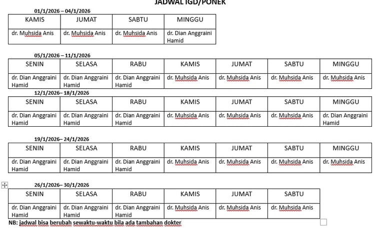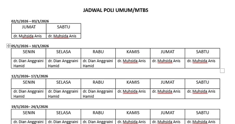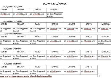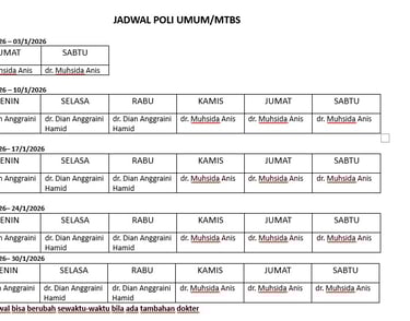 Jadwal Piket Dokter Umum yang di update setiap Bulan.